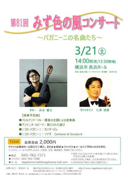 【コンサートのご案内】第81回みず色の風コンサート~パガニーニの名曲たち~