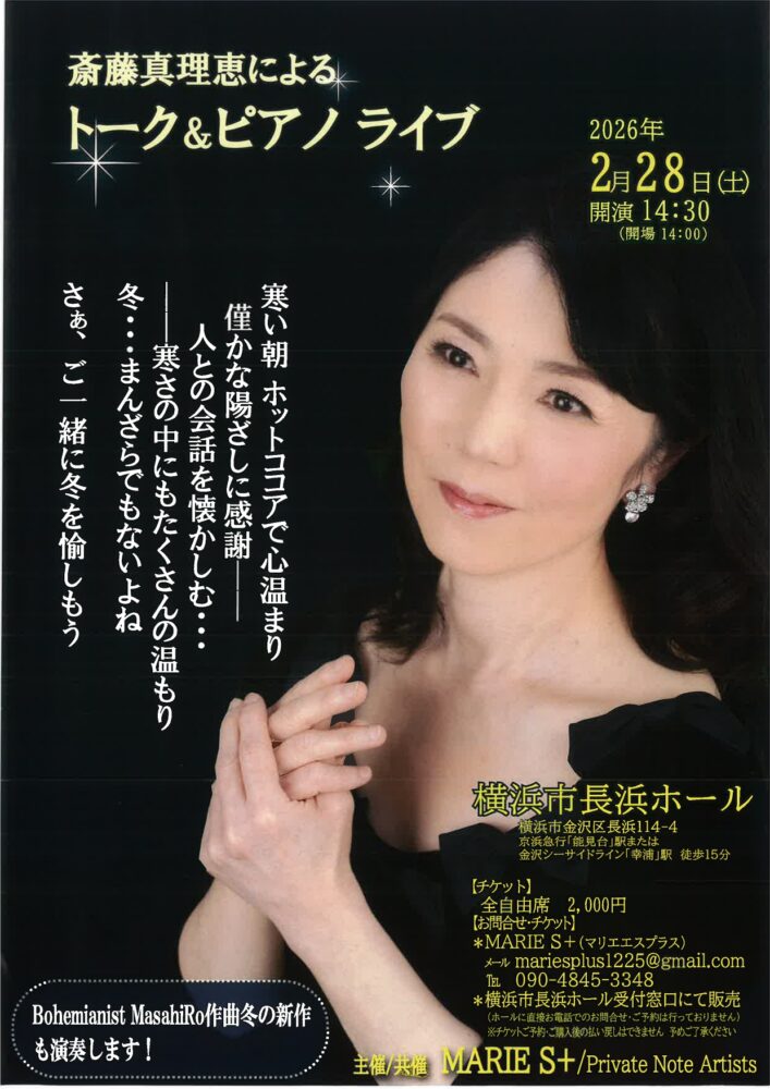 メール:mariesplus1225@gmail.com 電話:090-4845-3348 直接販売:長浜ホール窓口 ※長浜ホールでは電話でのお問い合わせ・ご予約は受けておりません。 ※ご予約・ご購入後の払い戻しはできません。 【主催・共催】MARIE S+ (マリエエスプラス)/Praivate Note Artists